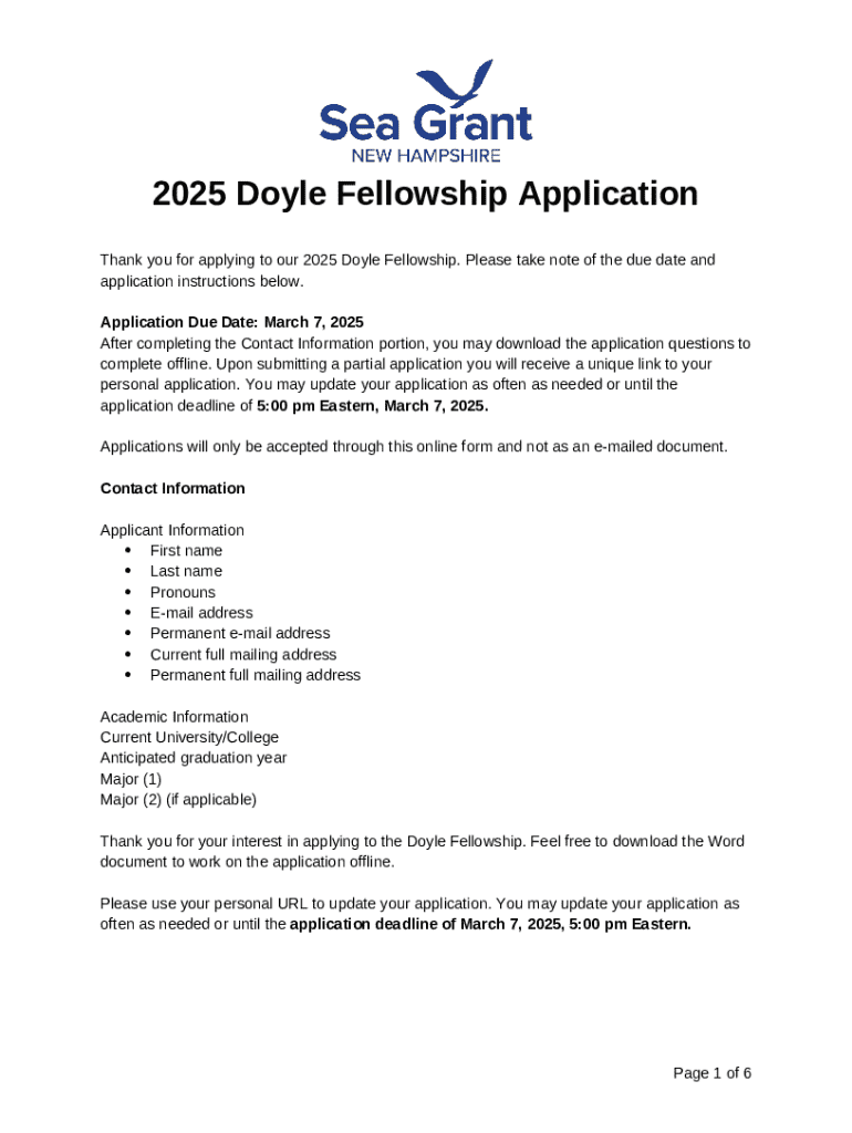 Template 2025 Doyle Fellowship Application - seagrant unh instructions