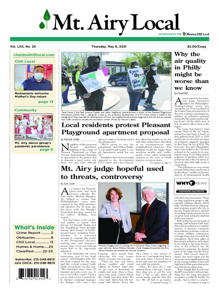 AN EDITION OF THEVol. LXII, No. 24Thursday, May 6, 2021$2.00/CopyWhy the air quality in Philly might be worse than we knowchestnuthilllocal.com Chill Localby Grant HillRestaurants welcome Mothers