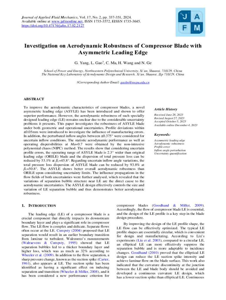 Journal of Applied Fluid Mechanics, Vol. 17, No. 2, pp. 337351, 2024. Available online at www.jafmonline.net, ISSN 17353572, EISSN 17353645. https://doi.org/10.47176/jafm.17.02.2127Investigation on