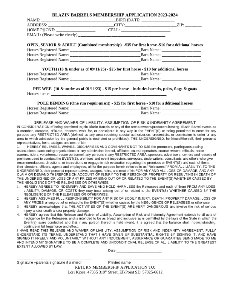 What is Blazin Barrels Membership Application 2023-2024 Form?