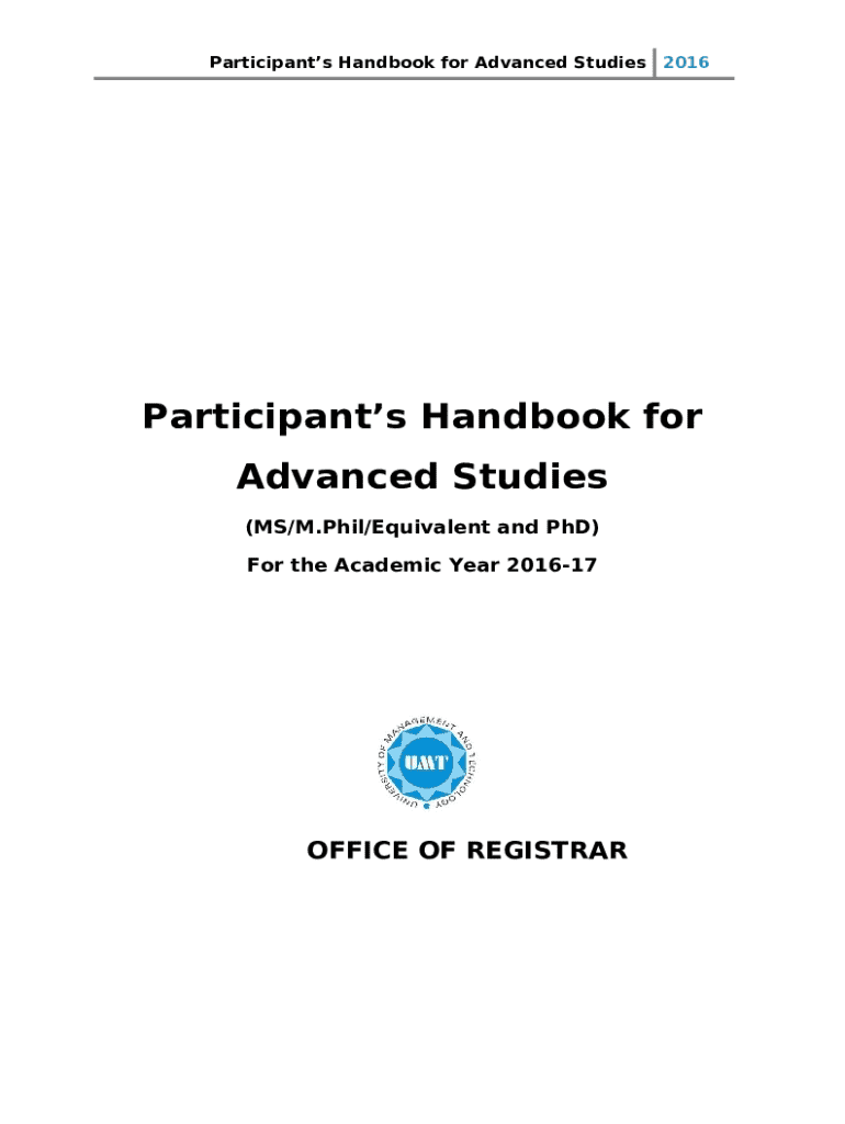 What is Participant's Handbook for Advanced Studies - admin umt edu Form?