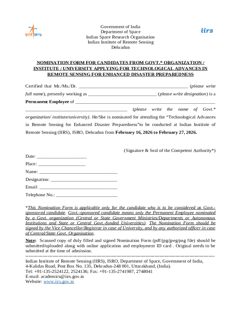 Instructions for the form Nomination for Technological Advances in Remote Sensing