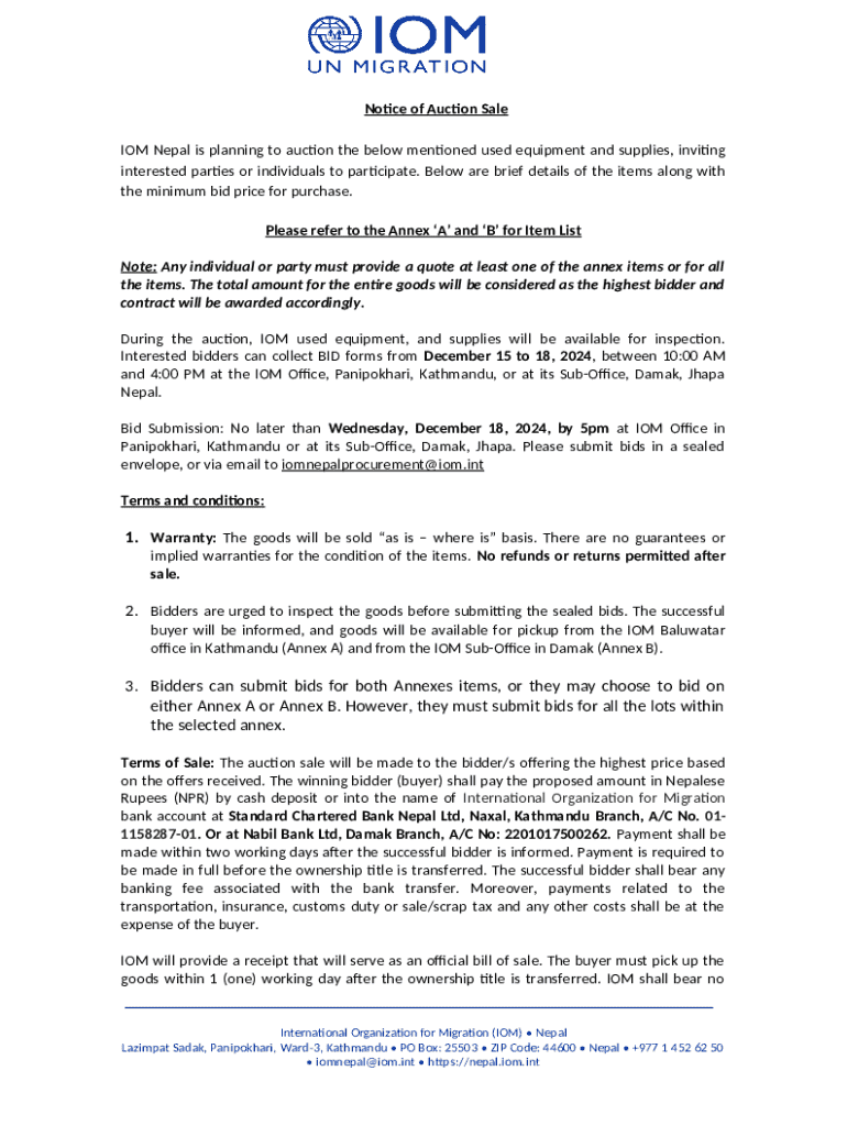 Frequently asked questions about the form Notice of Auction Sale - nepal iom