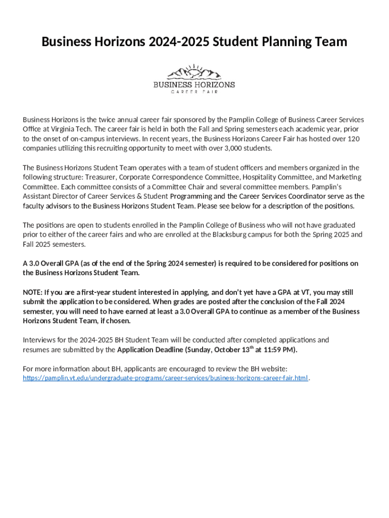 What is Business Horizons 2024-2025 Student Planning Team Application Form?