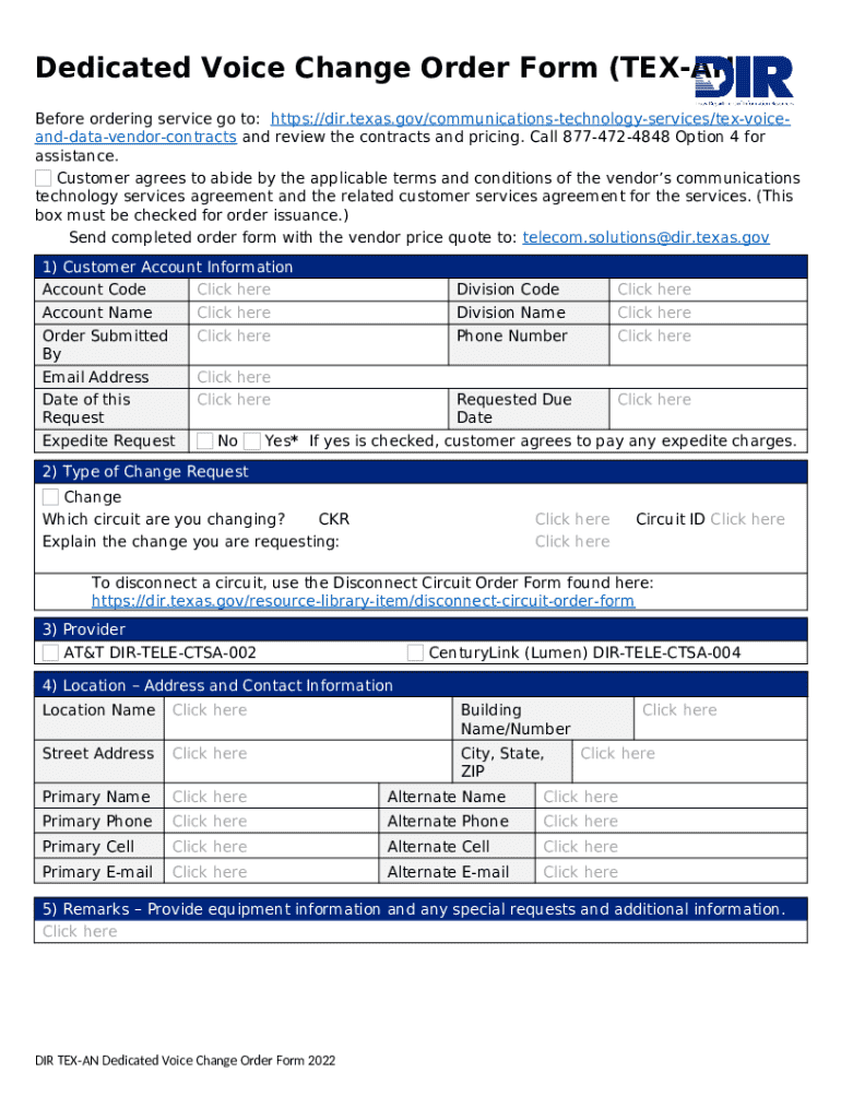 Dedicated Voice Change Order (tex-an) - dir texas template instructions