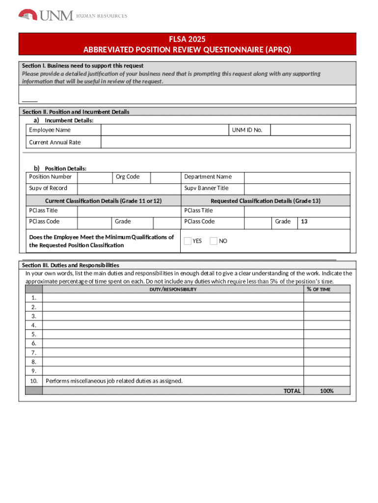 Frequently asked questions about the form Abbreviated Position Review Questionnaire (aprq) - hr unm