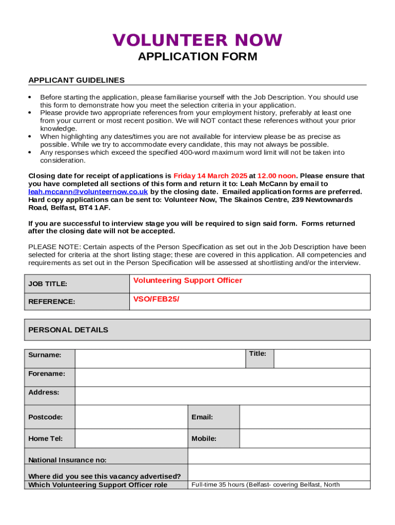 Instructions for the Volunteer Now Application form