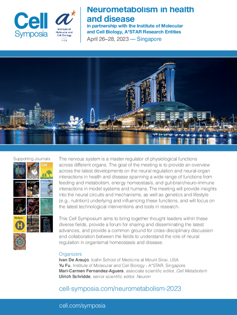 Neurometabolism in health and disease in partnership with the Institute of Molecular and Cell Biology, A*STAR Research EntitiesApril 2628, 2023 SingaporeSupporting JournalsThe nervous system is a