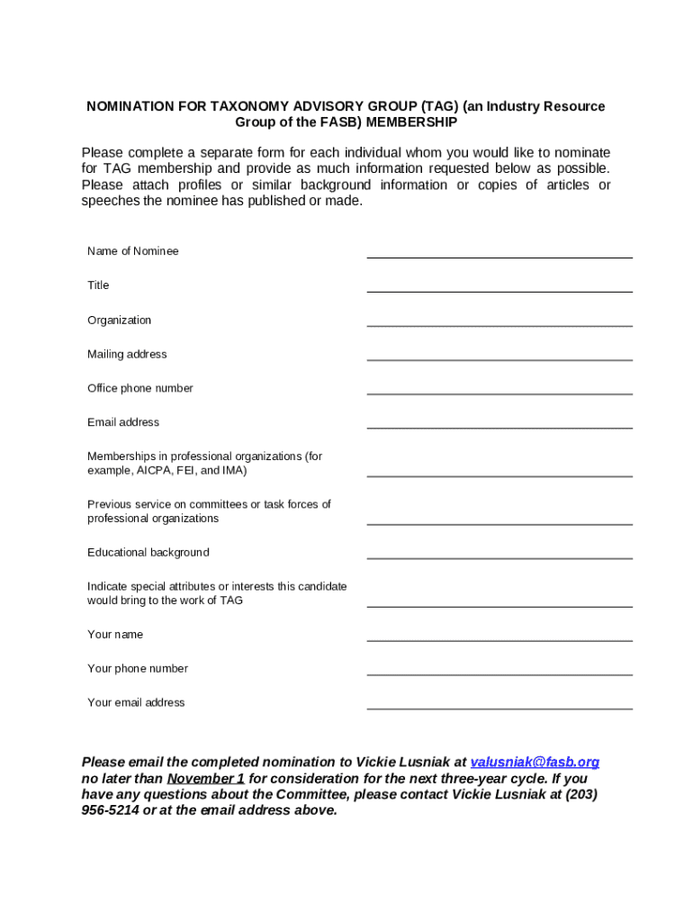 Instructions for the form Nomination for Taxonomy Advisory Group (tag) Membership