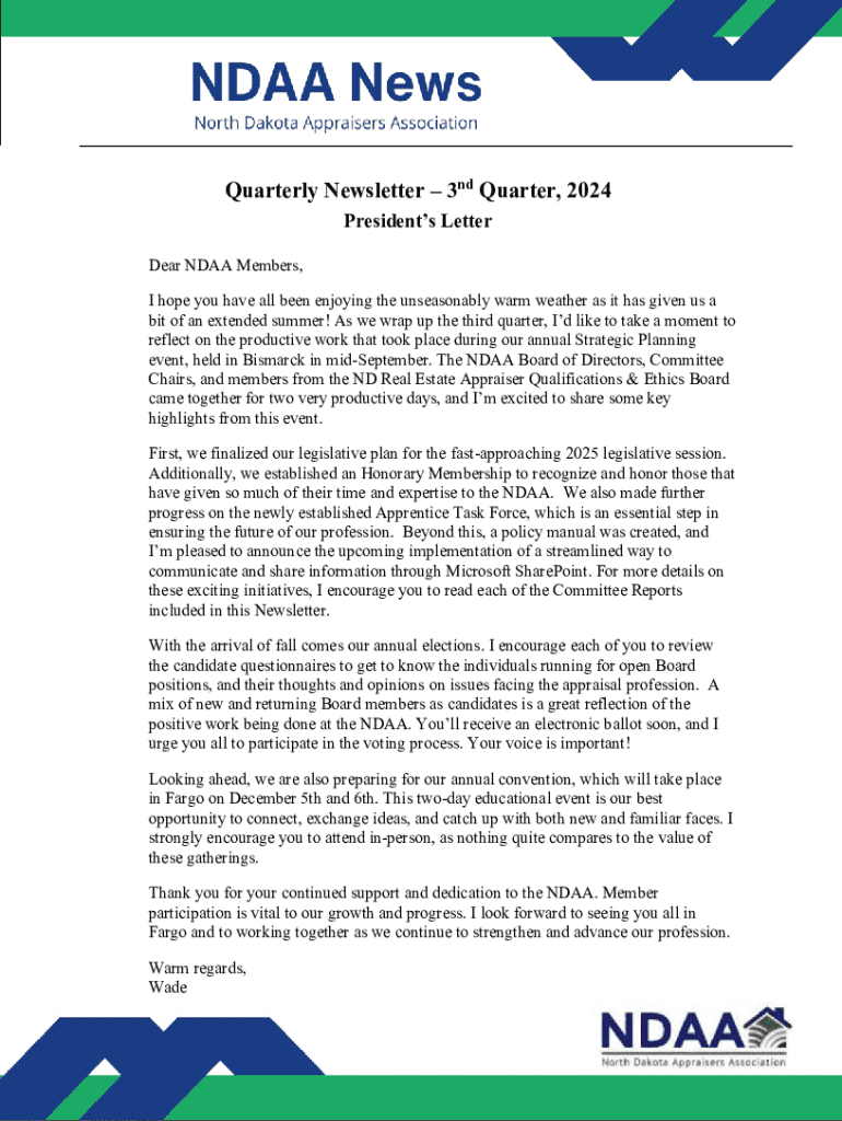 Fill out your quarterly newsletter 3rd quarter online with pdfFiller!