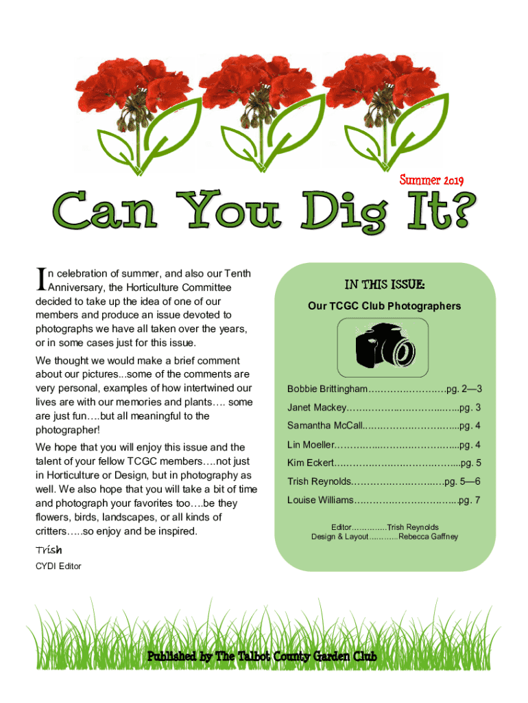 In celebration of summer, and also our Tenth Anniversary, the Horticulture Committee decided to take up the idea of one of our members and produce an issue devoted to photographs we have all taken