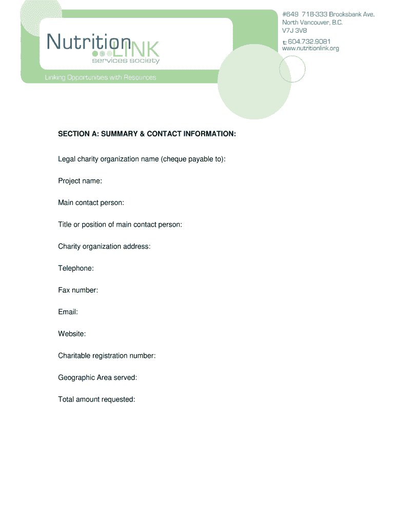 Nutrition Link Services Society is not the form you're looking for?Search for another form here.
