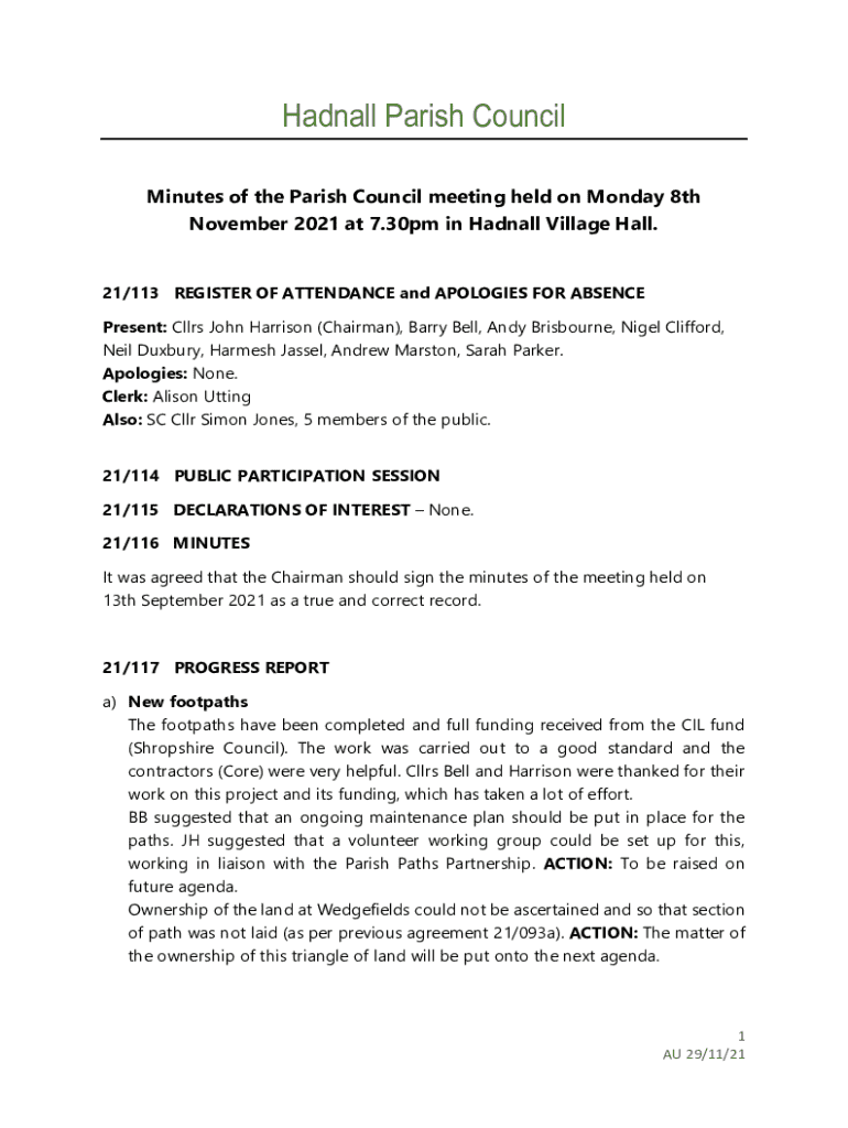 Edit your hadnall parish council minutes form online