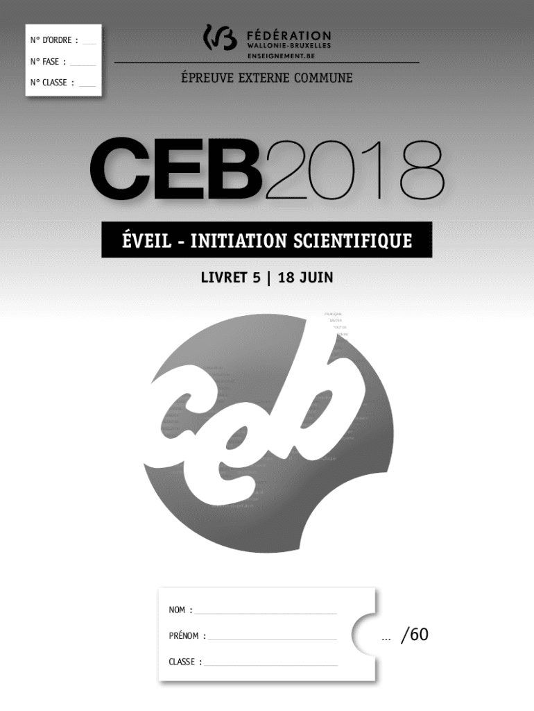 N dordre: ___ N FASE: ___preuve externe communeN CLASSE: ___CEB2018 veil initiation scientifique Livret 5 | 18 juin FRANAIS SAVOIR COUTERfranaisSAVOIR CRIREsavoirMATHMATIQUEScouterGRANDEURSsavoir