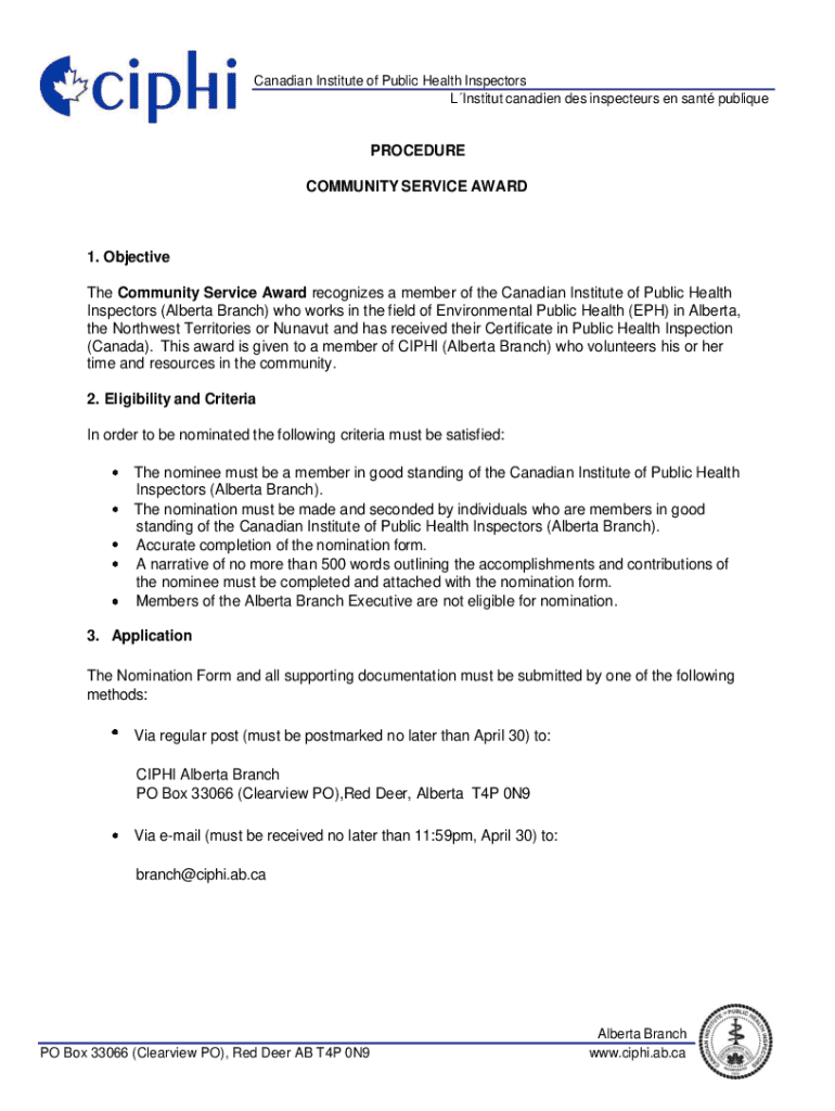 Get the free Nomination Form Community Service Award