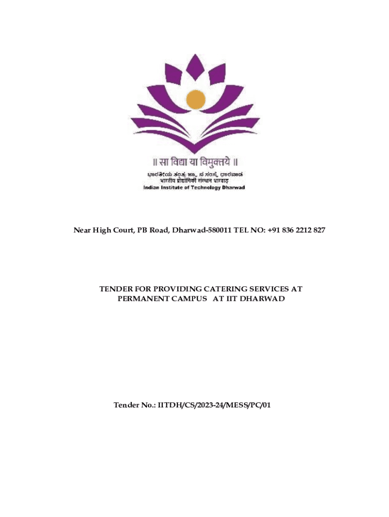 Near High Court, PB Road, Dharwad580011 TEL NO: +91 836 2212 827TENDER FOR PROVIDING CATERING SERVICES AT PERMANENT CAMPUS AT IIT DHARWADTender No.: IITDH/CS/202324/MESS/PC/01Notice Inviting Tender