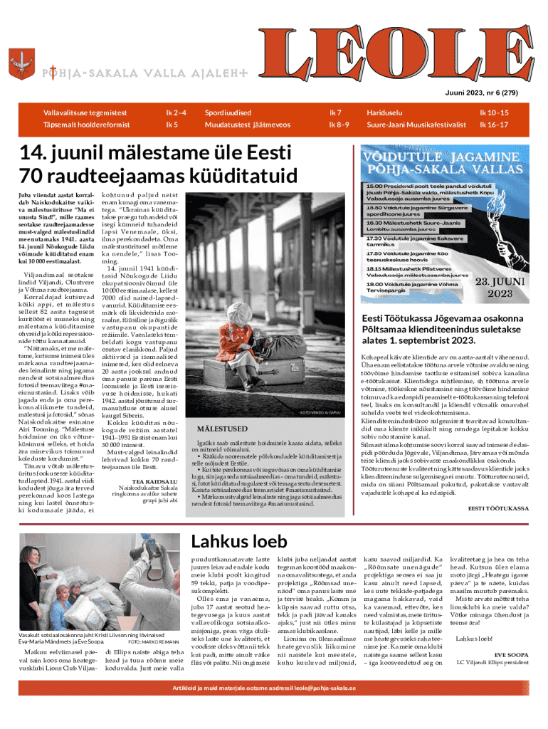 LEOLE 2018, nr 1 (214) JuuniJaanuar 2023, nr 6 (279)Vallavalitsuse tegemistestlk 24Spordiuudisedlk 7Hariduselulk 1015Tpsemalt hooldereformistlk 5Muudatustest jtmeveoslk 89SuureJaani Muusikafestivalistlk
