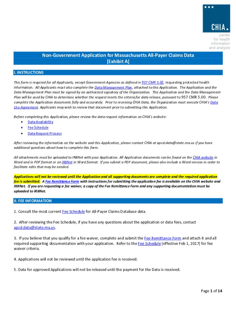 Get the free Non-government Application for Massachusetts All-payer Claims Data