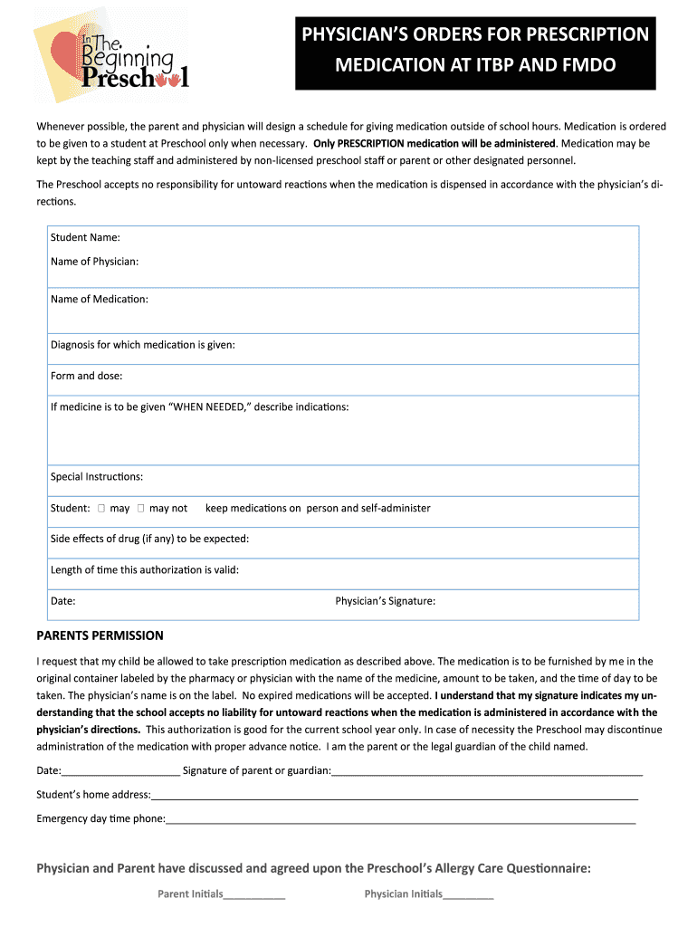 Get the free PHYSIIAN S ORDERS FOR PRESRIPTION MEDIATION AT ITP... - inthebeginningpreschool