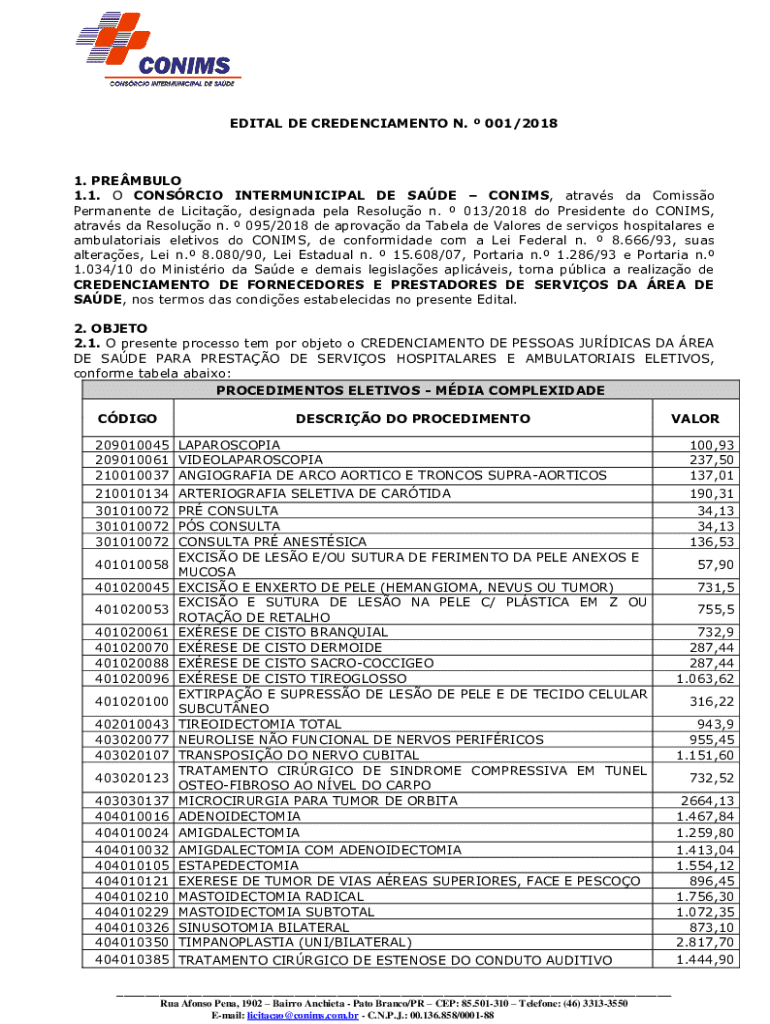 EDITAL DE CREDENCIAMENTO N. 001/20181. PREMBULO 1.1. O CONSRCIO INTERMUNICIPAL DE SADE CONIMS, atravs da Comisso Permanente de Licitao, designada pela Resoluo n. 013/2018 do Presidente do CONIMS,