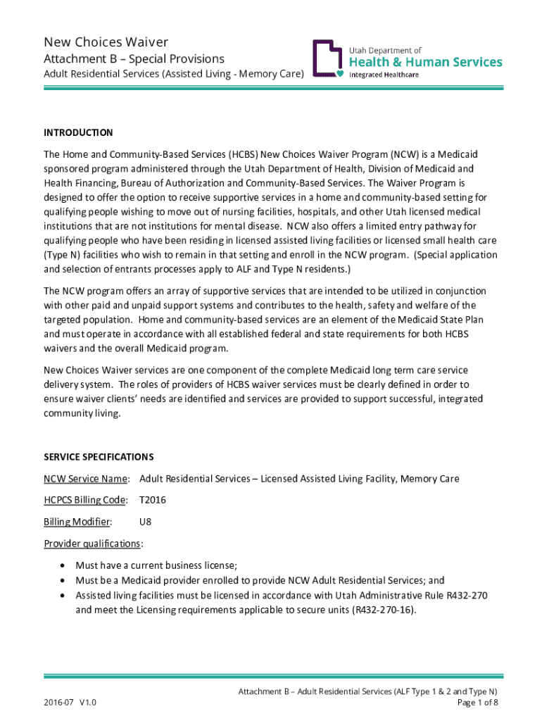 El programa New Choices Waiver (NCW) está diseñado para ofrecer servicios de apoyo a personas que desean recibir atención en un entorno comunitario. Este documento describe las especificaciones