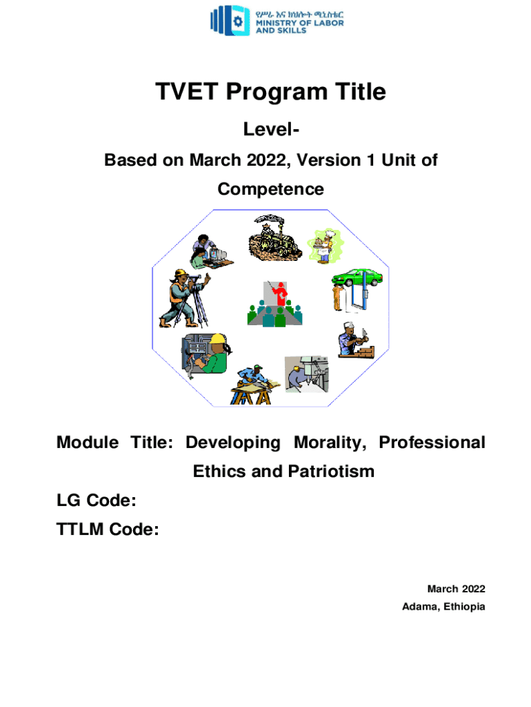TVET Program Title LevelBased on March 2022, Version 1 Unit of CompetenceModule Title: Developing Morality, Professional Ethics and Patriotism LG Code: TTLM Code:March 2022 Adama, EthiopiaTable of