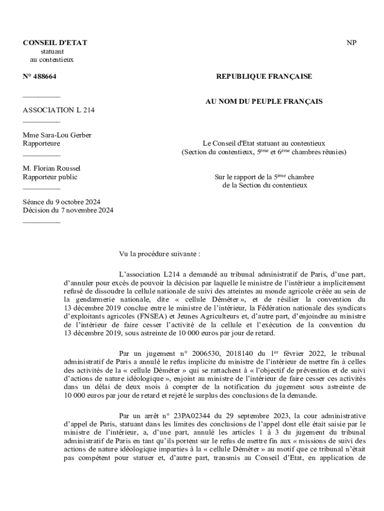 CONSEIL D\'ETAT statuant au contentieuxNPN 488664REPUBLIQUE FRANAISE___ AU NOM DU PEUPLE FRANAIS ASSOCIATION L 214 ___ Mme SaraLou Gerber Rapporteure ___Le Conseil d\'Etat statuant au contentieux