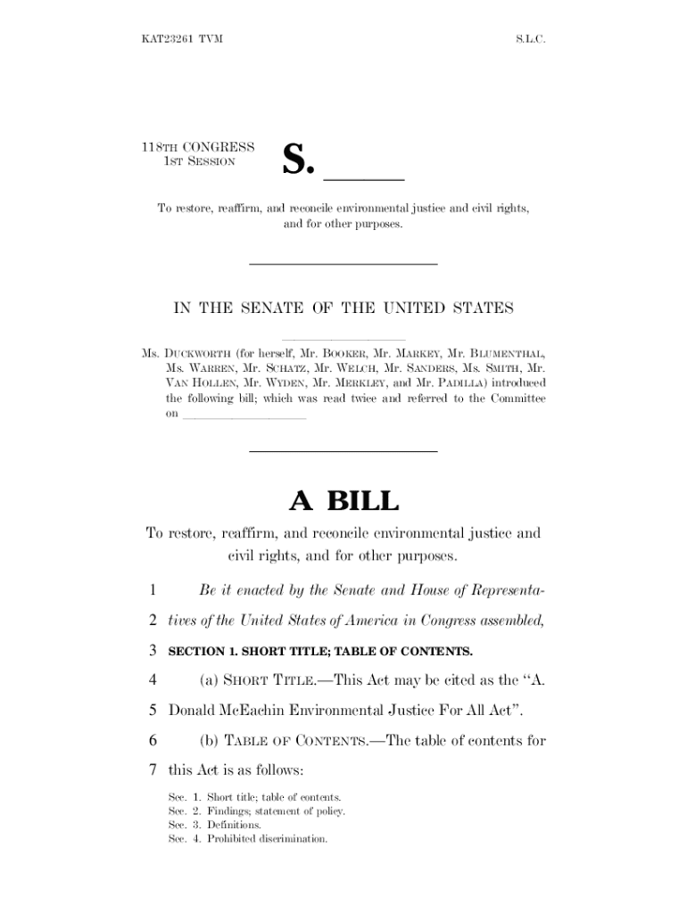 KAT23261 TVM118TH CONGRESS 1ST SESSIONS.L.C.S. llTo restore, reaffirm, and reconcile environmental justice and civil rights, and for other purposes.IN THE SENATE OF THE UNITED STATES llllllllll Ms.