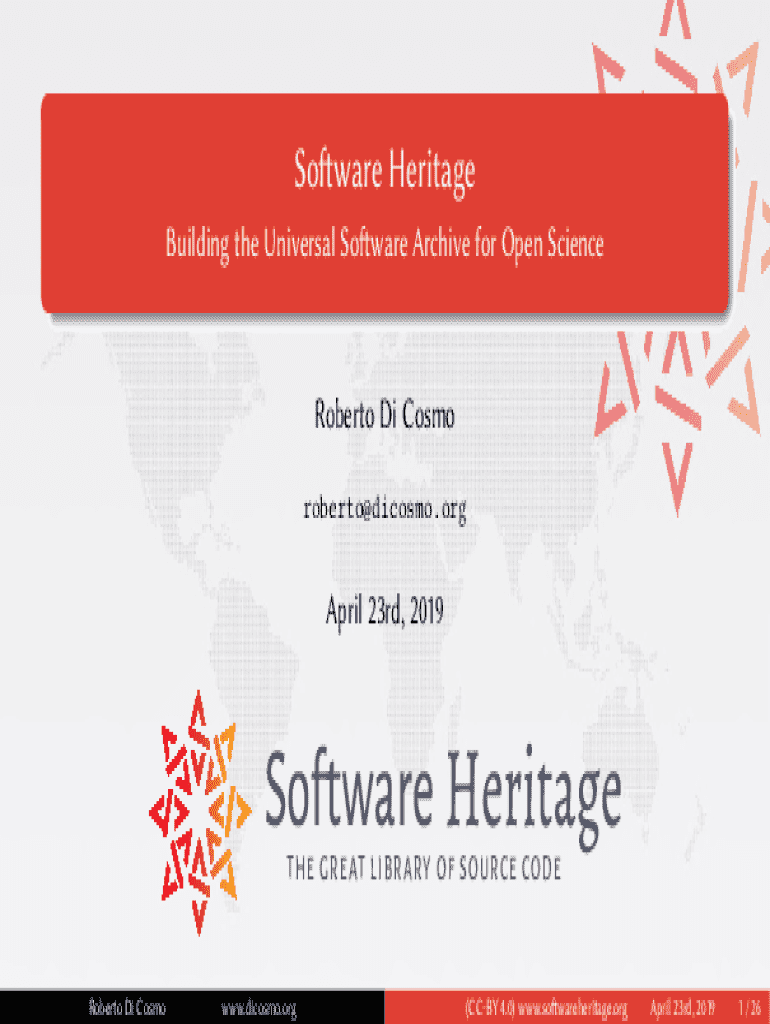 Software Heritage Building the Universal Software Archive for Open ScienceRoberto Di Cosmo roberto@dicosmo.orgApril 23rd, 2019THE GREAT LIBRARY OF SOURCE CODERoberto Di Cosmowww.dicosmo.org(CCBY 4.0)