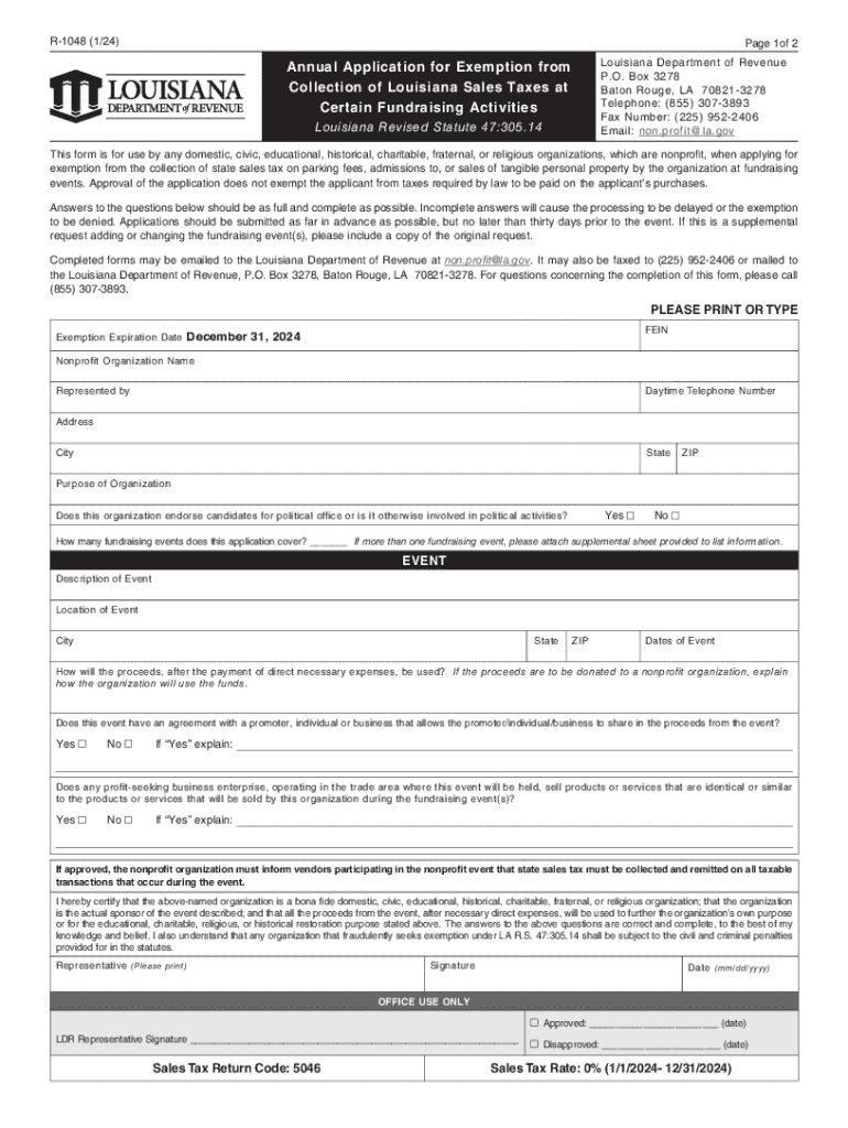 Obtain a copy of the R-1048 form, either online or from your local authority.