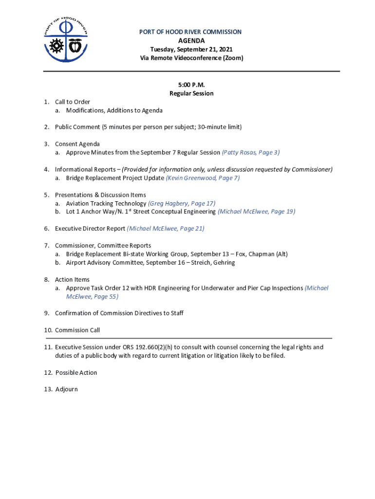 Get the free Port of Hood River Commission Agenda