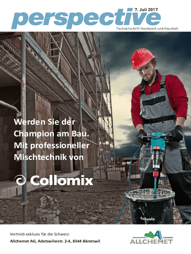 7. Juli 2017Fachzeitschrift Handwerk und HaushaltWerden Sie der Champion am Bau. Mit professioneller Mischtechnik vonVertrieb exklusiv fr die Schweiz: Allchemet AG, Adetswilerstr. 24, 8344 Bretswilonnect