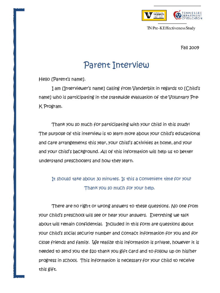 Get the free Tn Pre-k Effectiveness Study - Parent Interview