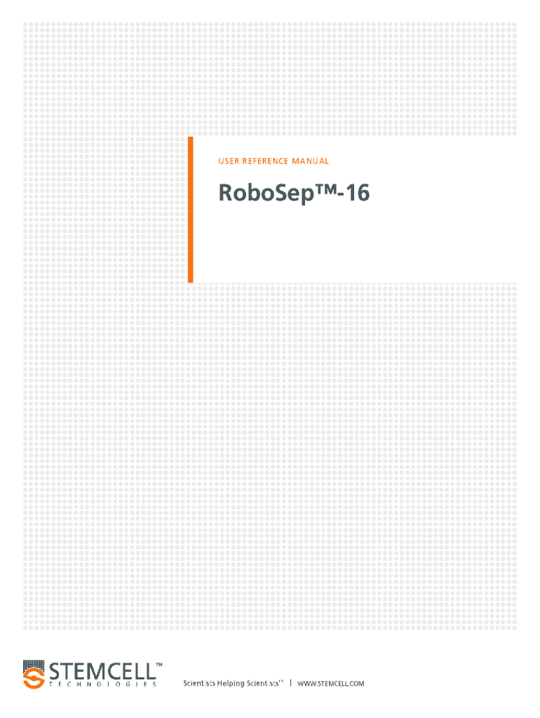 This document provides a comprehensive manual for the RoboSep™-16 automated cell separation instrument, detailing installation, operation, user profiles, maintenance, and safety precautions.