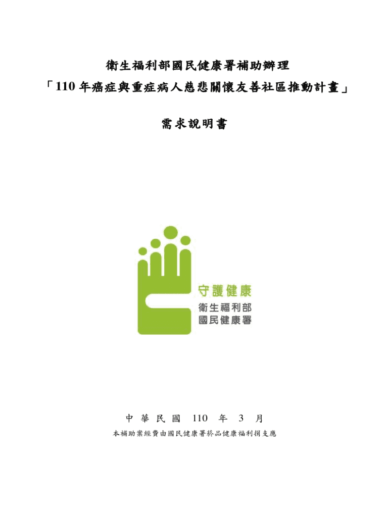 Get the free 110 年癌症與重症病人慈悲關懷友善社區推動計畫需求說明書