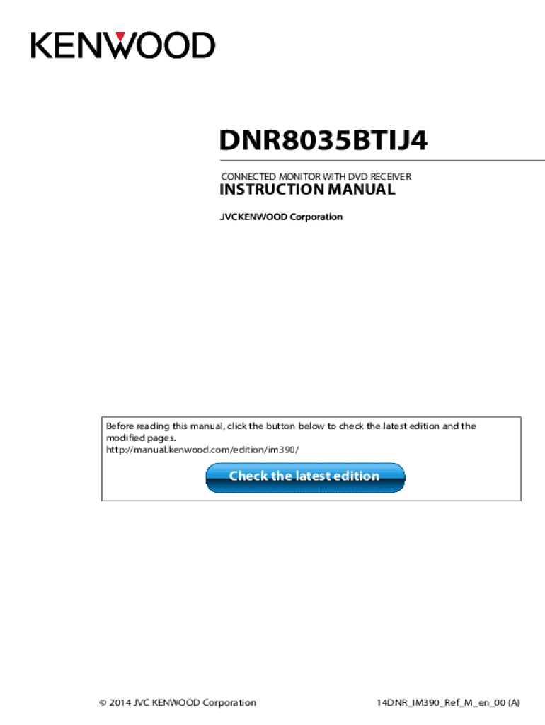 DNR8035BTIJ4 CONNECTED MONITOR WITH DVD RECEIVERINSTRUCTION MANUALBefore reading this manual, click the button below to check the latest edition and the modified pages. http://manual.kenwood.com/edition/im390/Check