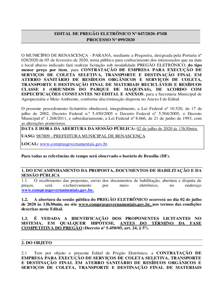 Obtenha o gratuito Edital De PregÃo EletrÔnico Nº 047/2020–pmr