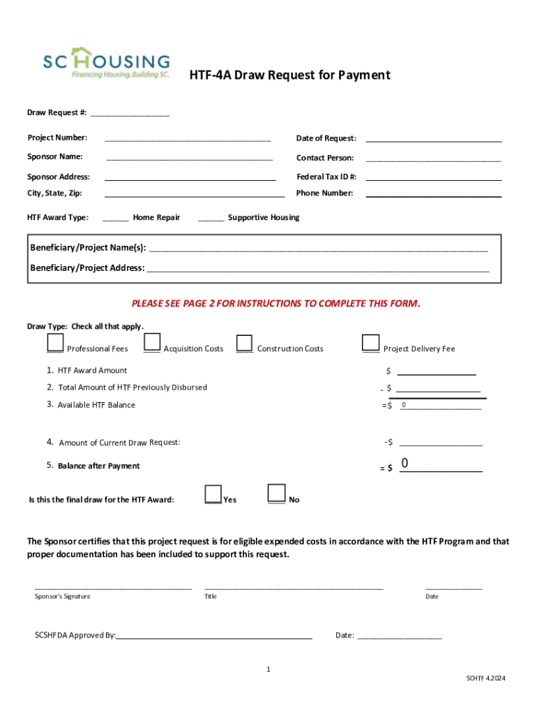 Get the free Htf-4a Draw Request for Payment