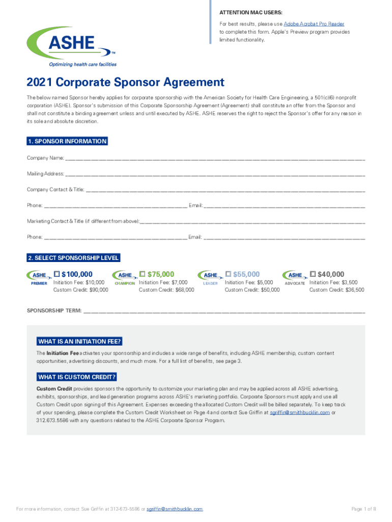 How to fill out 2021 corporate sponsor agreement