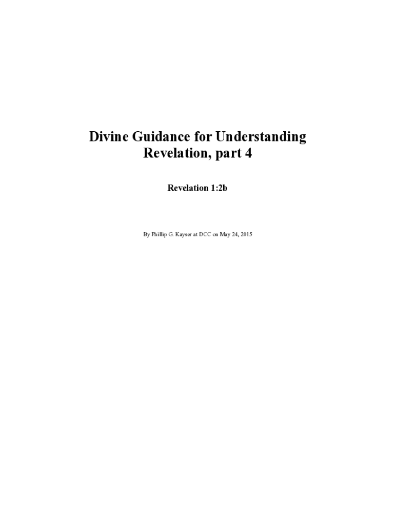 Divine Guidance for Understanding Revelation, part 4 Revelation 1:2bBy Phillip G. Kayser at DCC on May 24, 2015Divine Guidance for Understanding Revelation, part 4 Revelation 1:2b By Phillip G. Kayser