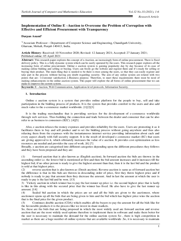 Turkish Journal of Computer and Mathematics EducationVol.12 No.1S (2021), 16 Research ArticleImplementation of Online E Auction to Overcome the Problem of Corruption with Effective and Efficient Procurement