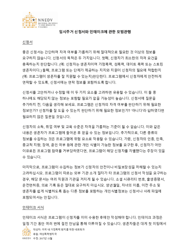 Get the free 임시주거 신청서와 인테이크에 관한 모범관행