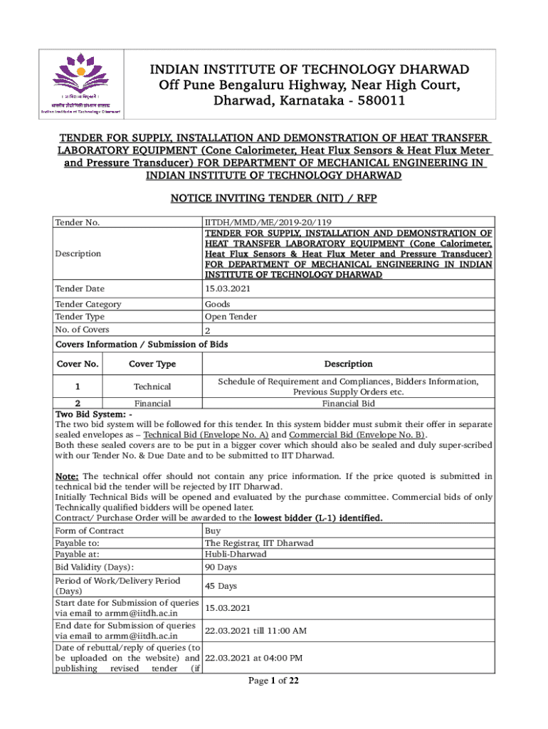 Get the free Tender for Supply, Installation and Demonstration of Heat Transfer Laboratory Equipment