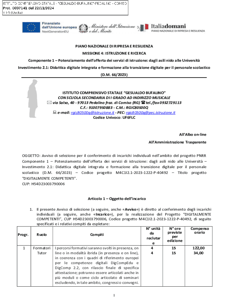 PIANO NAZIONALE DI RIPRESA E RESILIENZA MISSIONE 4: ISTRUZIONE E RICERCA Componente 1 Potenziamento dellofferta dei servizi di istruzione: dagli asili nido alle Universit Investimento 2.1: Didattica