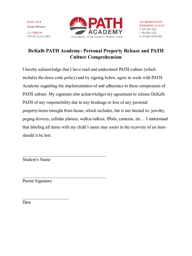 Obtener el gratis Dekalb Path Academy Personal Property Release