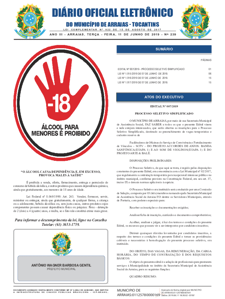 Obtenha o gratuito DiÁrio Oficial EletrÔnico Do MunicÍpio De Arraias