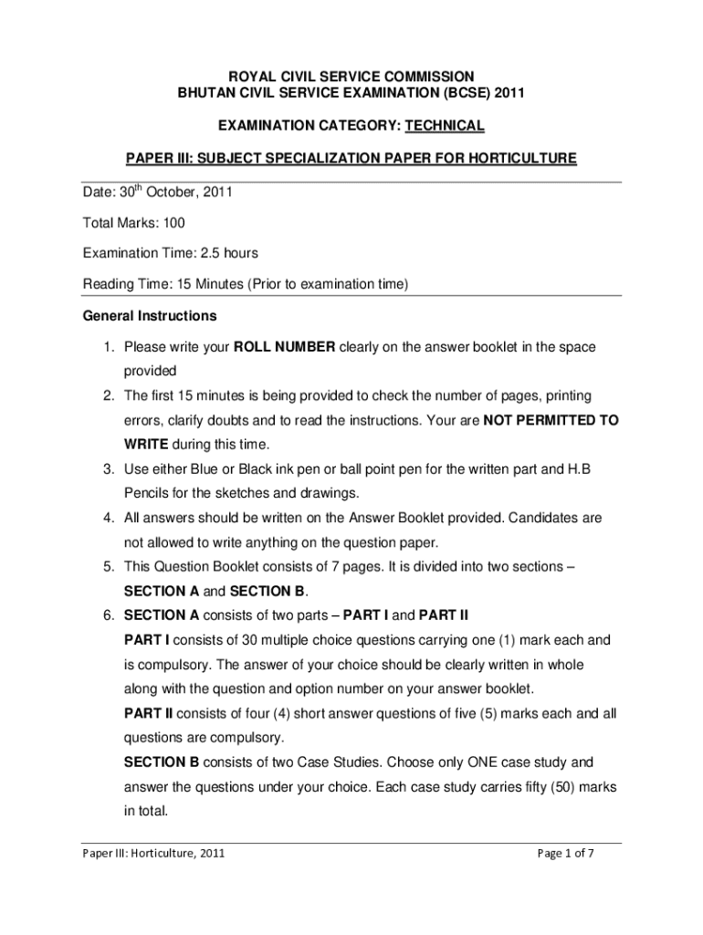 Get the free Bhutan Civil Service Examination (bcse) 2011 - Horticulture