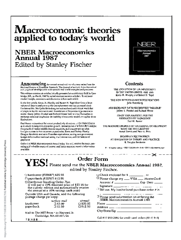Get the free Nber Macroeconomics Annual 1987