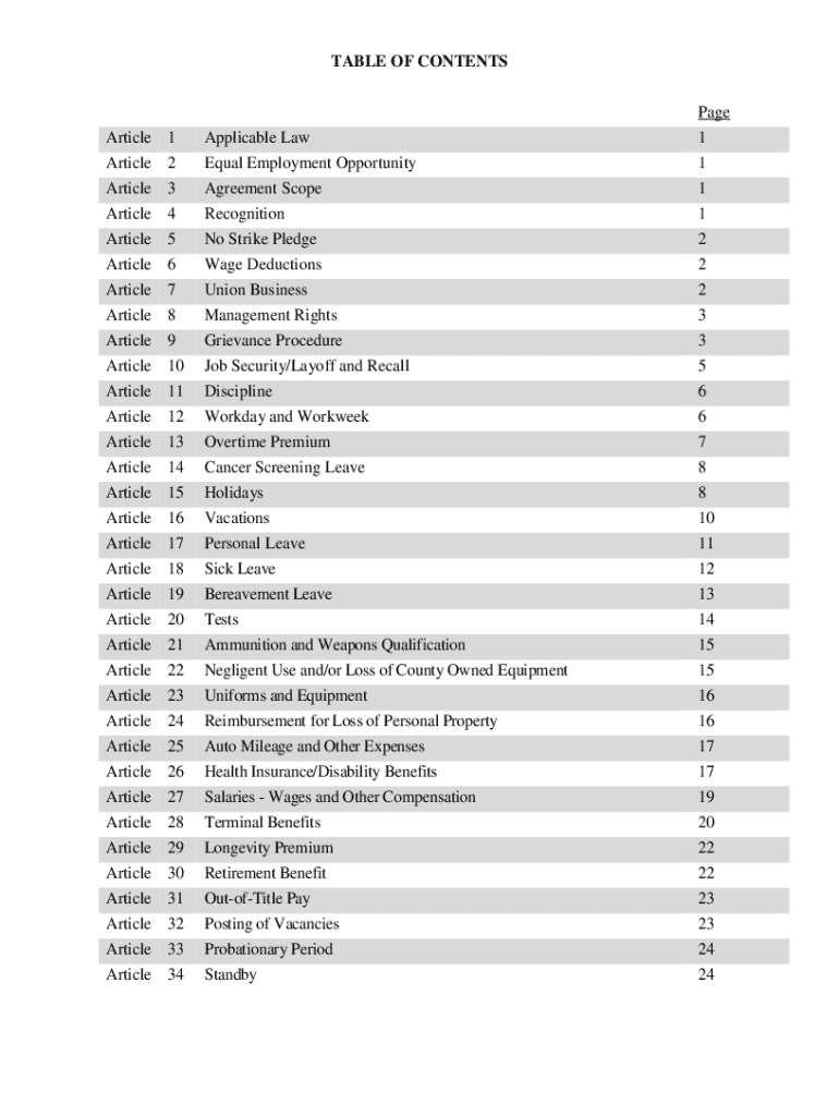 TABLE OF CONTENTSArticle Article Article Article Article Article Article Article Article1 2 3 4 5 6 7 8 9Applicable Law Equal Employment Opportunity Agreement Scope Recognition No Strike Pledge Wage