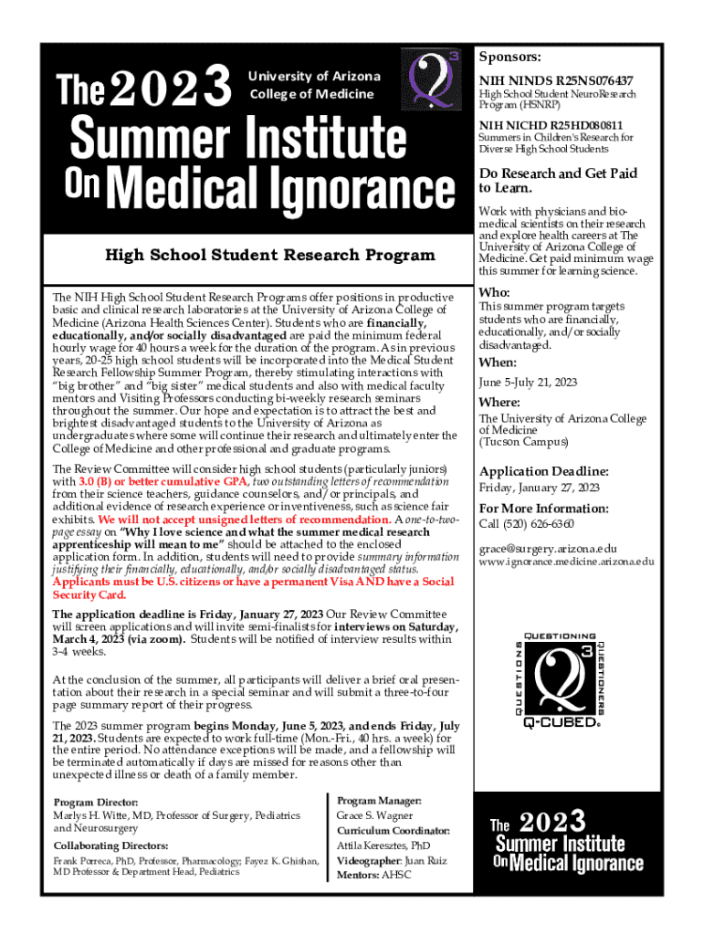 Get the free High School Student Research Program Application - ignorance medicine arizona